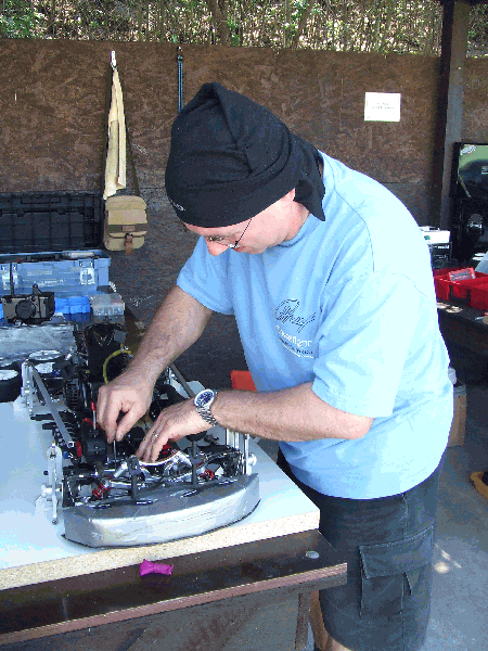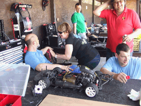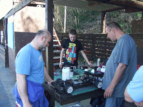 Nejlépe se to pozná podle toho, jak se modely blyští novotou. Nové, vyměněné díly a často i nové karosere dávají tušit, kolik času svým miláčkům jednotliví modeláři věnovali přes zimu. Dorazili i noví majitelé pětin, mezi něž patří například Jiří Vyšín i rodina Valáškových. Každý si přijel vyzkoušet, jak se modely chovají na dráze, jak funguje jejich nastavení a případně doladit co se, v klidu dne volného ježdění, dá. Vydatným pomocníkem všem byl opět Pavel, který mnohým poradil a některým i pomohl přiložením rukou k dílu. Mezi ty, kterým na modelu zapracoval, patřím i já, za což mu ještě jednou děkuji.