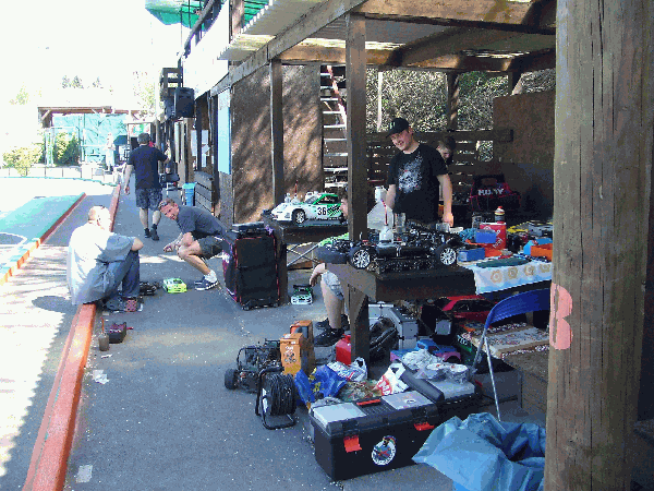 Dráha po ránu chvíli klouzala, ale během dne se vyčistila stopa a modely začaly fungovat. Jak jsem již psal, dráhu využili ve volný den hlavně modeláři s modely pětin, v počtu je pak následovali modeláři s elektrami (ve výrazné menšině), a spalovací desetinu testující již zmiňovaný Jiří Vyšín.
