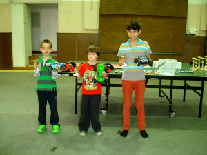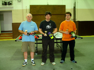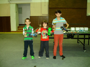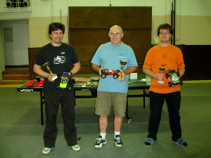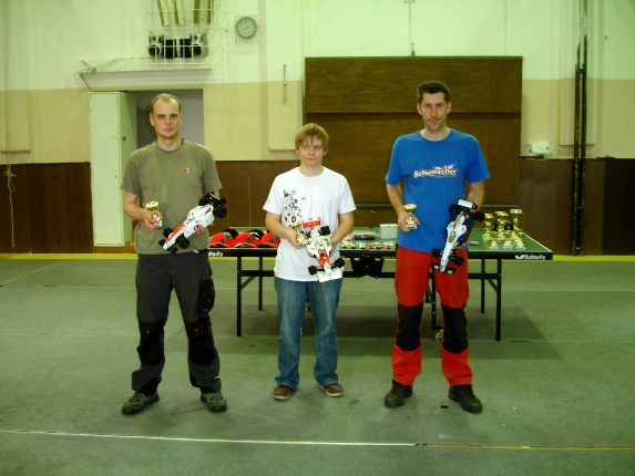 Po povinné registraci jsme začali závodit. Ve formulích šlo o poslední závod na koberci, další již budou na venkovní asfaltové dráze. V kategorii mini Off Road se bojovalo o celkové prvenství. Pro dva jezdce šlo o umístění v závodě i celém seriálu. Mezi Petrem Vyhnálkem a mnou se strhl hned od začátku boj, který trval celý závodní den. Nedali jsme si nic zadarmo a pro nás oba to byl velice zajímavý a krásný sportovní zážitek. Ostatní soutěžící bojovali stejným způsobem a tak nebylo nic jasné až do posledního kola závěrečné rozjížďky. Při rozřazení na rozjížďky byl starý matador Honza Cinger zařazen do druhé skupiny mezi juniory a tak byl velkým oživením na lavičce jezdců. Čtyři drobní klučinové a na konci lavičky stojící Honza, který nejmenšího převyšoval o celou délku. Nijak to ale nevadilo souitěžnímu soupeření mezi nimi. Honza po takřka dvouleté odstávce byl zdatně stíhán malým Viktorem Vyhnálkem, který jednotlivá kola odjížděl v pomalejším, ale velmi pravidelném rytmu a právě tou pravidelnou jízdou byl těžkým soupeřem.