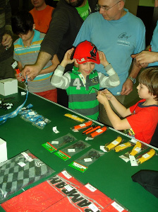 Sobotní ráno v sokolovně se podobalo těm předchozím. Hned od rána jsme stavěli dráhu a i tentokrát bylo dost pomocníků z řad soutěžících jezdců. Po hodině práce se na koberci již jasně rýsoval nový tvar dráhy, který spolu sdílely formule a mini Off Roady. Pavel dorazil po ránu také s velkou krabicí s dárky do již tradiční tomboly na závěr zimní sezóny.