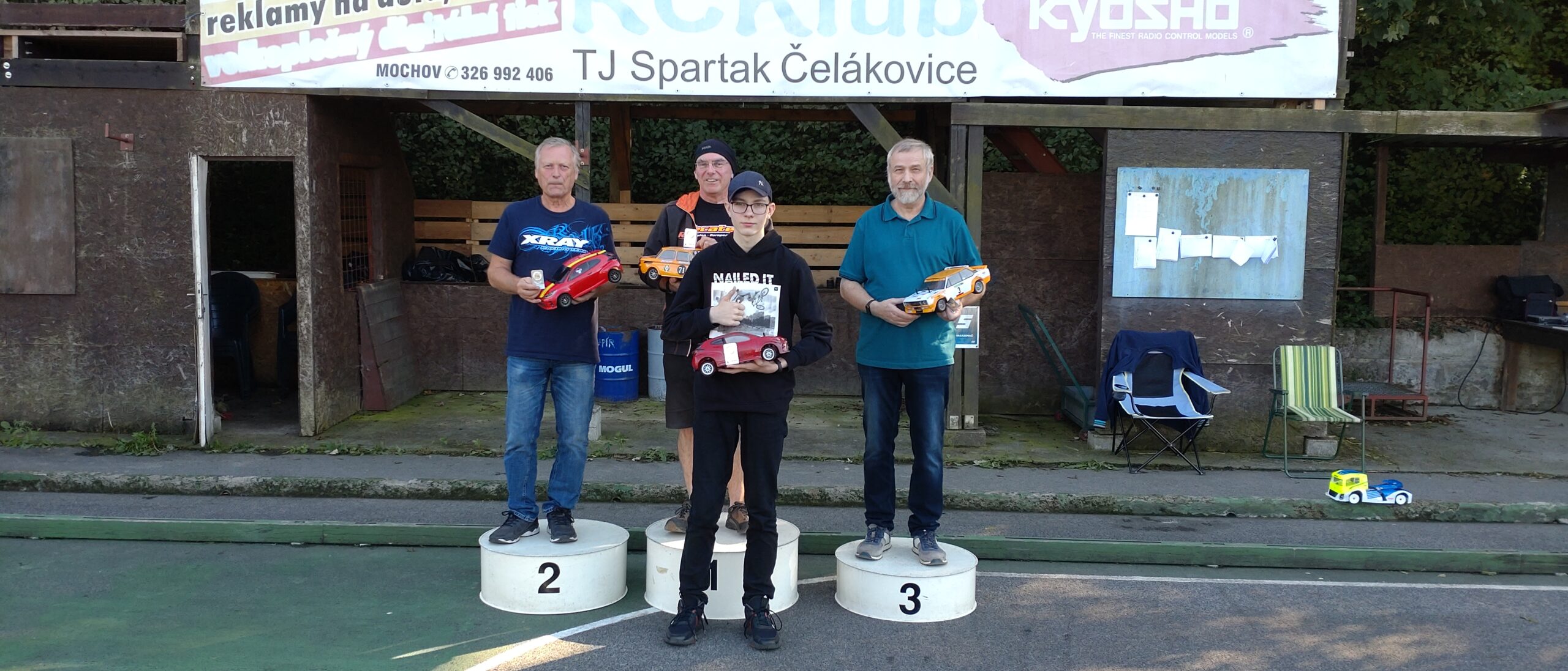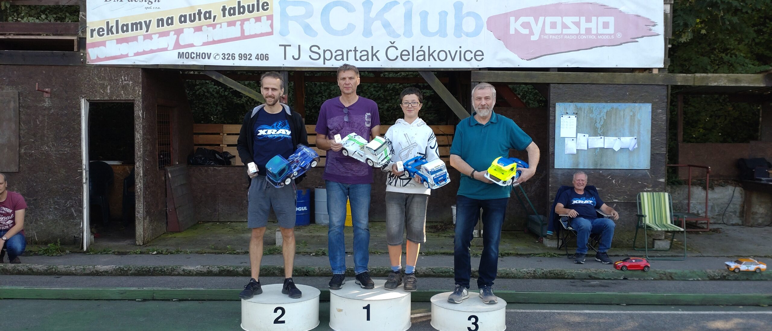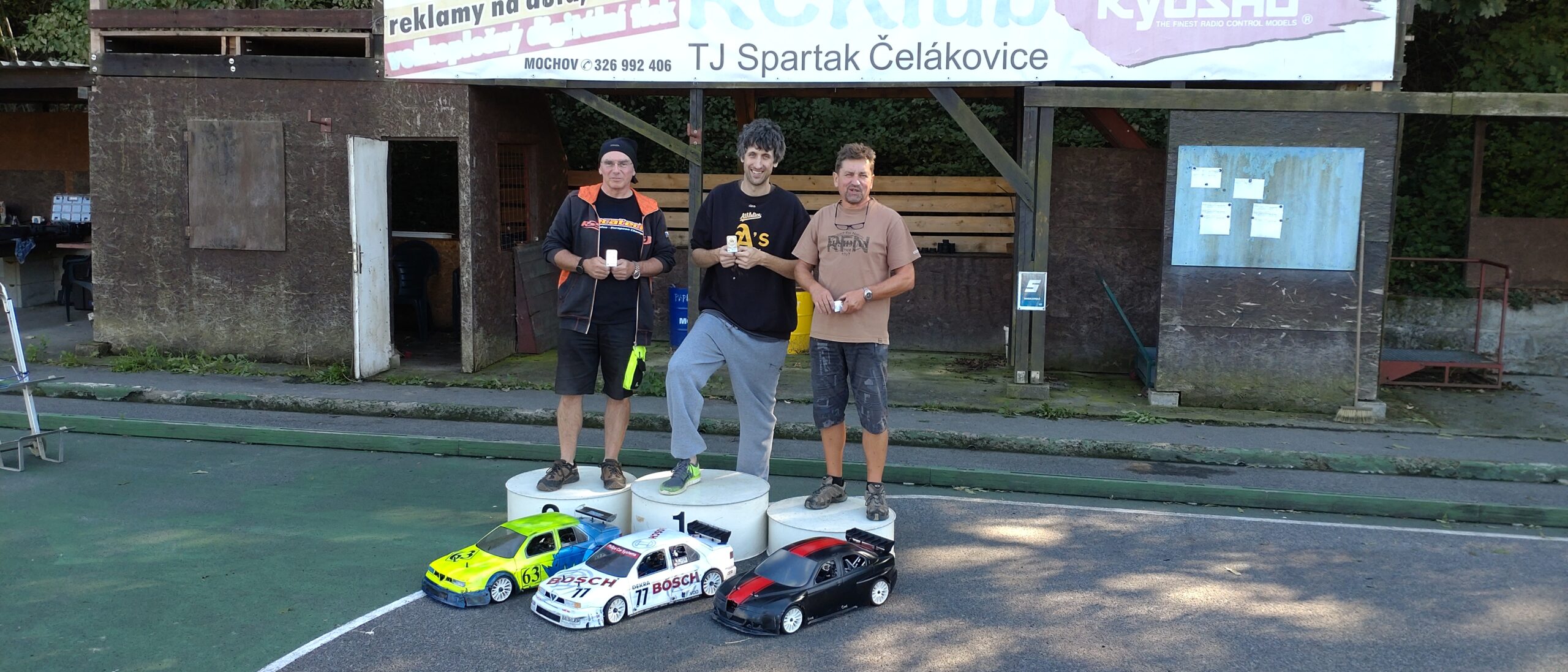 Open EP – nedělní závody přebraly sobotní počasí, i když po ránu bylo v depu chladněji. Přihlášených 28 modelů v pěti kategoriích slibovalo pěkný soutěžní den a také to tak bylo. Ve třech kategoriích bylo už dopředu rozhodnuto o celkovém vítězi, ale teoretické kombinace dávali mnoha jezdcům možnost bojovat o další stupně vítězů. Stejně jako v sobotu i v neděli bylo vidět na dráze mnoho krásných soubojů mezi jezdci o umístění, které mohlo ještě zasáhnou do celkových výsledků. Chtěl bych vyzdvihnout jízdy Adélky Heřmánkové, která hodně pozlobila svého otce. Adélka vyzkoušela nahřívání pneumatik před jízdou, Míra Loupý jí je nabídl k dispozici, a výsledky byly úžasné. Adélka jezdí kategorii 13,5T Stock, a její otec, Martin Heřmánek, kategorii Modified, ale výsledky byly překvapující. Adélky časy se vyrovnaly časům Martina, zaostávala za ním jen o sekundy, nájezdy měli shodné, a tak nevím, jak by to v tu chvíli dopadlo, kdyby jeli ve stejné kategorii. Žák, tedy spíše žačka, se dotáhl na svého učitele. Myslím, že letos Adélka velmi vyrostla se svým jezdeckým uměním. Asi řeknu, že Martin je dobrý učitel a Adélka pozorný žák, když si bere k srdci rady jiných a také se jimi řídí. Opravdu krásné překvapení. V kamionech závodilo pět jezdců o pozice a je to příjemné zpestření s touto kategorií a dráze. Krásné modely kamionů s nájezdy podobnými kategorii Stock. Snad pod vlivem svého sobotního výsledku se mi v neděli dařilo po dlouhé době v kategorii Tamiya Cup. Podařilo se vyhrát všechny jízdy dne způsobem start cíl. Sedlo mi to. Bylo to nervy a vteřiny, ale štěstí se na mě usmálo a měl jsem úspěšný závěr sezóny. Je to samochvála, omlouvám se. Hlavně jsem bojoval s Mírou Vlkem o pozici na bedně, a tak jsem byl rád, že se daří. O výsledcích rozhodovali skoro ve všech kategoriích dojezdové časy, protože bylo mnoho stejných nájezdů, a tak byl výsledek až do celkového vyhlášení dne leckde nejasný. Tedy až na Jirku Jarolímka mladšího, který opět střídal tři kategorie a ve všech jel brilantně. Přecházet ze čtyřkolky na zadokolku a pak zase na čtyřkolku, hned v rychlém sledu, to chce být mistrem. Má můj obdiv, protože ne s takovým, ale spíše mizerným výsledkem to mám vyzkoušeno, střídáním předo a zadokolky. Vzdal jsem to a dal přednost předokolce. Takže Jirka má můj obdiv.
